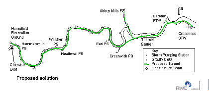 The Government has yet to make a decision on whether the scheme is to proceed. The total cost at today's prices would be £1.5 billion which it is widely thought that the Government would be unwilling to fund. The cost to Thames Water customers if they were asked to fund the project is estimated to be £40 per customer. Thames Water are asking for funding from the Government on the basis that the tunnel would serve 7 of the poorest boroughs in the country.