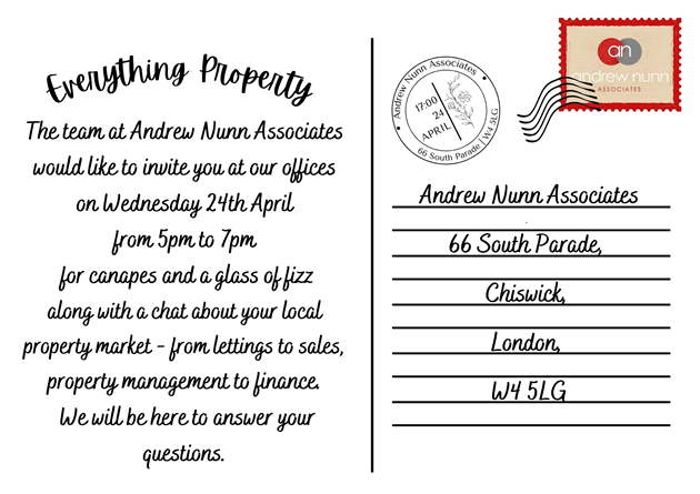 Come along to Andrew Nunn on Wednesday 24th April from 5pm to 7pm for canapes, a glass of fizz and a chance to chat about the local property market with the Andrew Nunn experts.