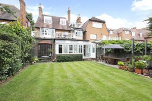A grand entrance hall leads onto two large reception rooms one looking to the front with a pretty bay and one to the rear with feature windows overlooking the garden. Both offer feature fireplaces and ornate period features. The hand built kitchen includes an array of integrated appliances and leads onto the conservatory and the mature garden. The first floor offers two large bedrooms, one with a terrace with garden views, lending either to be used as the master with a family bathroom. Behind an additional cloakroom lies a study with a delightful picture window overlooking the garden. The second floor offers three further bedrooms, family bathroom and an additional terrace.  The asking price is £3,600,000.