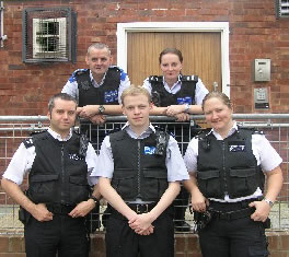 Left to right: Sgt Eric Ostrowski, PCSO Jeff Cox, PCSO Scott Thomas, PCSO Sharon Ellis, PC Sarah Hook