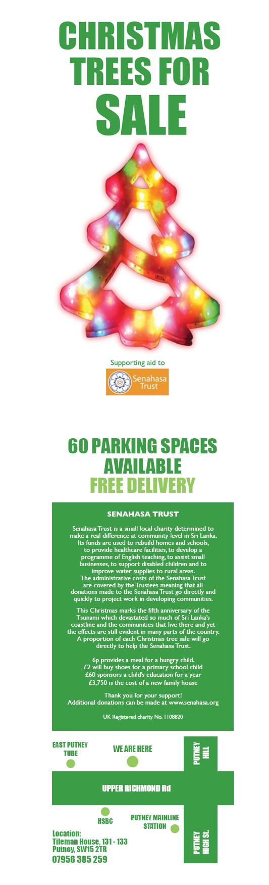 We have a wide range of quality non-drop Christmas trees sizes ranging from 3ft to 14ft luxury tree. We are once again supporting the charity Senahasa Trust www.senahasa.org ) We have very easy access with 60 off-street parking spaces and free delivery available. Please pass this onto friends and family as your support would be very much appreciated.