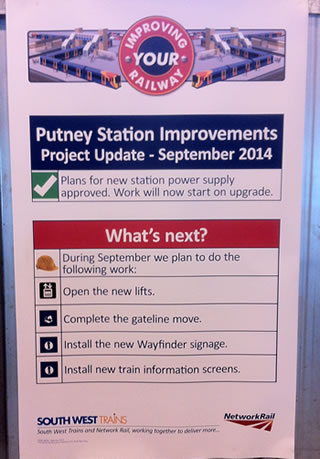 A spokesman for the council told PutneySW15: "The council has been applying renewed pressure on Network Rail and South West Trains to complete the long awaited improvements to passenger services and station facilities. Now the council has been given assurances that the station’s newly installed lifts will be available to use within ten days and will be fully operational by the end of next month. And works to relocate the stations’ ticket barriers and the installation of digital information screens should be completed within the next two weeks."