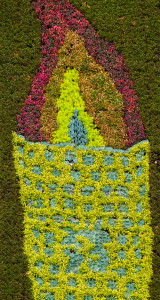The designs measure four metres by two metres and depict Olympic themes. They have each been created using around 3,000 plants including altermanthera, echeveria elegans, senecio serpens, sedum gold mound, herniaria glabra and helichrysum white wonder.