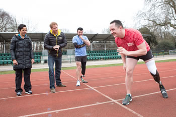 Prince Harry attended a Sport Relief training session at Wandsworth Council’s Battersea Park Millennium Arena this week to lend his support to the two 2014 Invictus Games competitors who will be taking part in Sport Relief: Clash of the Titans on Friday 18th March as part of the Sport Relief Night of TV on BBC One.