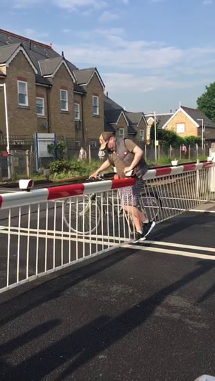 The man, who was described as being `aggressive’, lifted his bike over before forcing his way between the barriers at North Sheen level crossing on Manor Road during the morning of Thursday 11 May 2017. His actions were witnessed by horrified commuters, schoolchildren and parents who pleaded with him to wait.