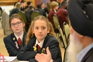 The young people were given a fact pack in advance summarising each belief, and then conducted a whistle-stop tour round the room interviewing each representative in turn. The questioning lasted 15 minutes before a bell was rung and the students moved on to the next table.