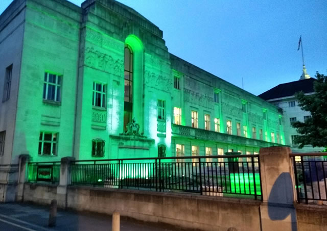 The Wandsworth Council building was illuminated in green lights just before 1am to mark the moment 12 months ago that the blaze began. It remained illuminated until sunrise, and will be bathed in green again later today between dusk and midnight.