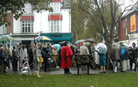 Despite pouring rain, over 160 people watched “War Walks” historian, Professor Richard Holmes, unveil the first of the new information panels outside the Syon Park Garden Centre on Sunday morning. And another 70 were at Turnham Green Terrace to see him unveil another panel by the E3 bus stop the same afternoon.