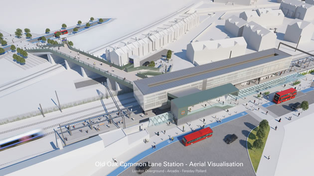 A major interchange station on Old Oak Common Lane would link London Overground’s North London Line, Elizabeth line (Crossrail) and HS2 rail services linking stations such as Gunnersbury, South Acton and Acton Central. This potential new station would be situated about 350 metres to the west of HS2 and Elizabeth line station between Old Oak Common and Midland Terrace.