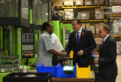 | David Cameron is shown around the factory floor | before meeting members of the staff