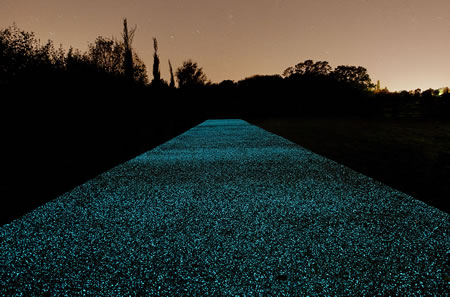 The special Pro-Teq Starpath is made of bioluminescent material that soaks up UV sunlight rays during the day and then emits light at night, getting brighter the darker it becomes.