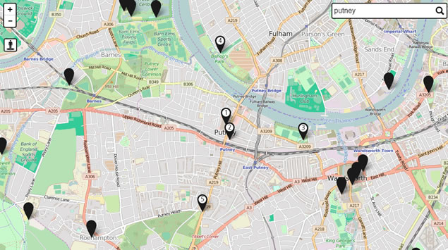 Map of the nearest loos in Wandsworth