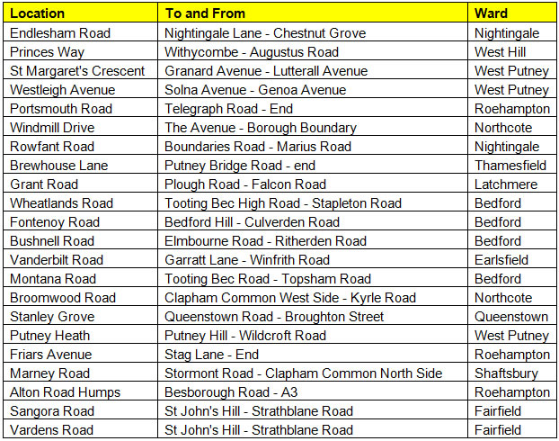 Previous months have seen 1,052 pothole repairs in Nightingale, 942 in Queenstown, 932 in Roehampton and 711 in East Putney.