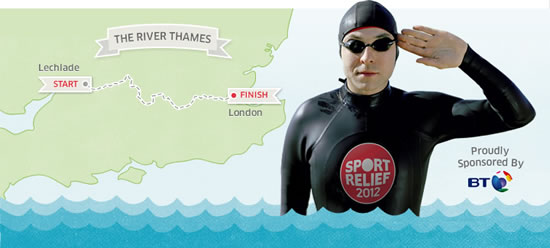 Sponsor David at www.sportrelief.com/walliams and also go to The Big Splash for details on how to swim your own local river safely.