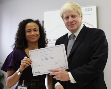 Mayor of London, Boris Johnson presenting the award to Emily Aidoo, Exercise Practitioner |