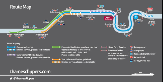 After departing Putney they will stop at Wandsworth Riverside Quarter, Chelsea Harbour, Cadogan, Embankment and Blackfriars Piers.