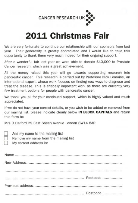 Print & complete to be added to the Putney & Roehampton CRUK mailing list