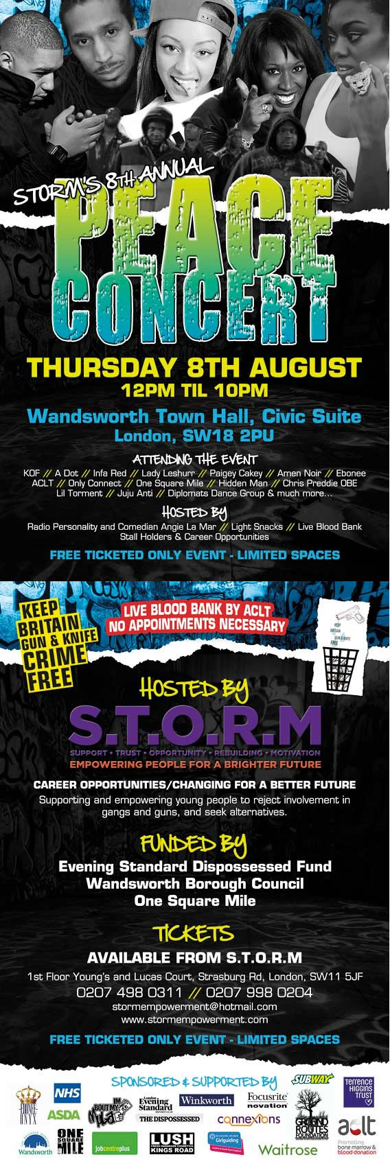 S.T.O.R.M. are also looking for famous artist, and they have room for more stands so if you or if you know anyone who would like to get involved or advertise their services, please contact Marie Hanson on stormempowerment@hotmail.co.uk or call 0207 4980311