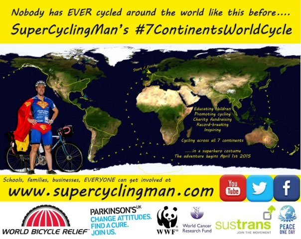 He is currently trying to win a prize of £10,000 to help him get to the start line of something he has dreamed about for a long time - a record-breaking, 5 year long, across all 7 continents bike ride in his superhero outfit!