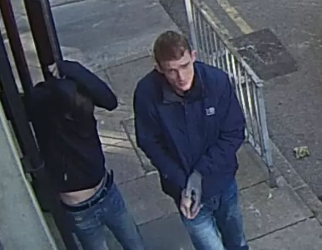 The first man is described as being white, in his mid-twenties, of slim build and clean shaven with short black hair. He was wearing a blue shirt, dark trousers and possibly brown shoes.