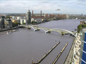 Battersea based architects One world design plan to build the Diamond Jubilee Footbridge close to Chelsea Harbour Pier, where the Queen boarded her barge during her jubilee celebrations.