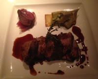Tender roast rump of lamb that melted in the mouth, served with artichoke served on potato with red onion, and a rich robust Chianti wine sauce. I chose a glass of the red wine that Guiseppe Turi recommended on the menu - knowing my friend would drink white there was no way we could order a bottle of each and so using Guiseppes guidelines I had a rich glass of Primitivo Salento, a rich fruity red.