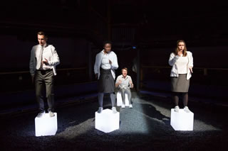 For we eventually realise it is all about Nick's state of mind and his world being torn apart. We lose sight of the truth, the facts, as much as he does. Even time shifts and defeats our efforts to make it linear. As directed by Mel Hillyard and designed by Hyemi Shin we, like Nick, become focused on the four simple illuminated cubes of the set. Constantly they are rearranged and reordered into squares and triangles or taken away like a children's lesson in subtraction. Until there is nothing left to cling to.