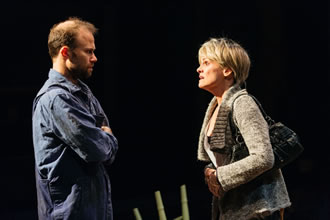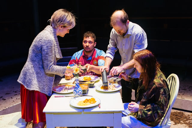 Designer Cécile Trémolières sets the stage for the unfolding secrets with a May as bleak as the arrival of our current one, with end-of-winter dead leaves and pub-garden detritus across the stage and a tree bough barely burgeoning with spring green. But not all is hopeless. Like those tiny green shoots, Harry with his own far-too-youthful experience of handling pain and troubled parents, brings a stumblingly straight-talking wisdom into this family's life. And a glimmer of hope. Tremendous.