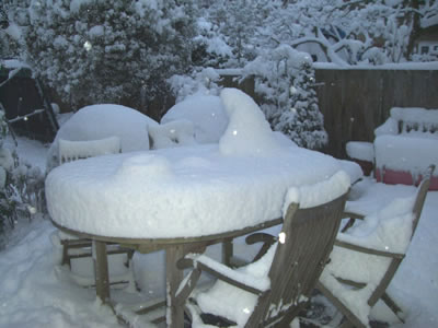 | First snow for this puppy! | Last nights snowman gets buried overnight! |