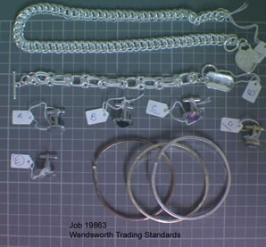A lot of the jewellery bore false hallmarks and tests commissioned indicate it is gold or silver plated brass. One man is currently on police bail while the investigation continues.