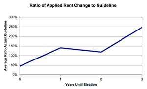 | Years until Election | Rent increase charged as % of govt Guideline |