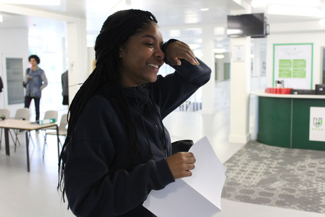 There were many tears of happiness as students eagerly opened their results envelopes. Maia Drummond, who achieved A* A* A in English Literature, Sociology and History, and will go on to study English at Kings, said, “I cannot believe it! I’m so happy that all this hard work paid off. I want to thank all my teachers, I have really prospered at Ark Putney Academy, especially through the creative side of the school – I played Macbeth and Romeo – but not in the same play!”