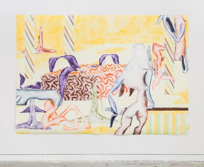 For Floats Road, Duck has created new works that depict bodies that seem to reference the human, but are distorted and disproportionate. The figures exist in a liminal state that Duck refers to as ‘kind-of-human’, occupying landscapes that verge on the alien.